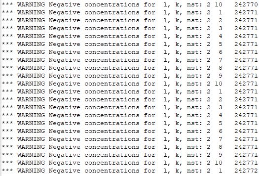 Heat flux model and WARNING negative concentration for l, k, nst:
