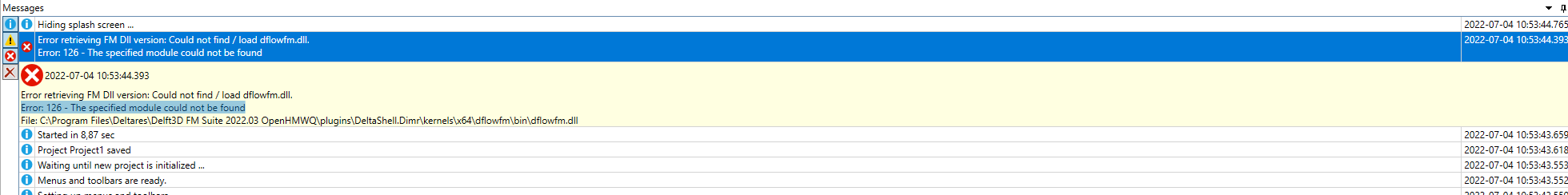 - Error retrieving FM Dll version: Could not find / load dflowfm.dll