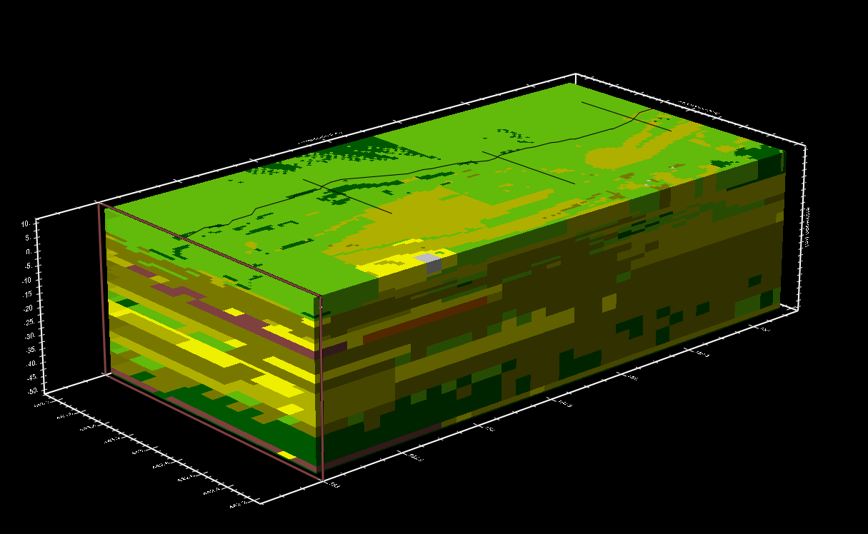 Capping is working great for a geological model with IDF's describing the top and bottom of the layers. Capping is however a complicated technique for the Voxel format in the 3D tool. At the moment the coloring of the interface in 3D is not correct.